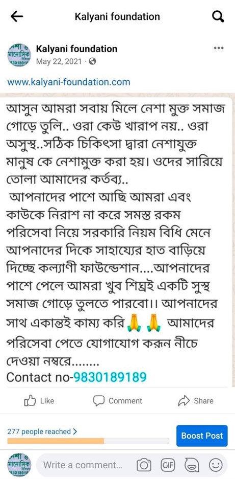 Awarness program at our rehab center by West Bengal Forum for De-addiction & Rehabilitation